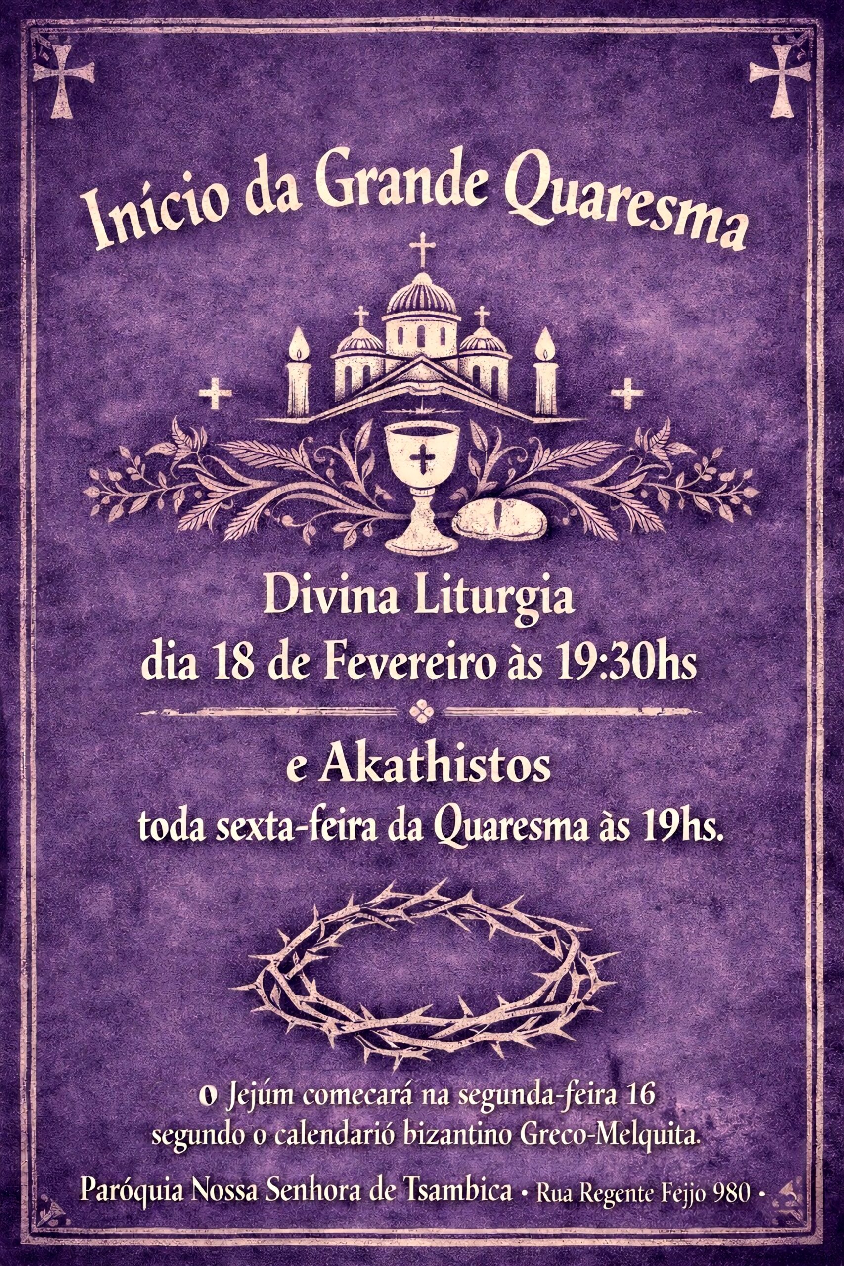 Início da Grande Quaresma 2026